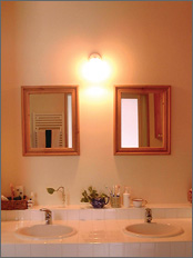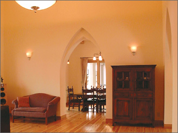 直線的な空間がより奥行きを感じさせ、女性的なアーチが優しい印象を与えてくれる。